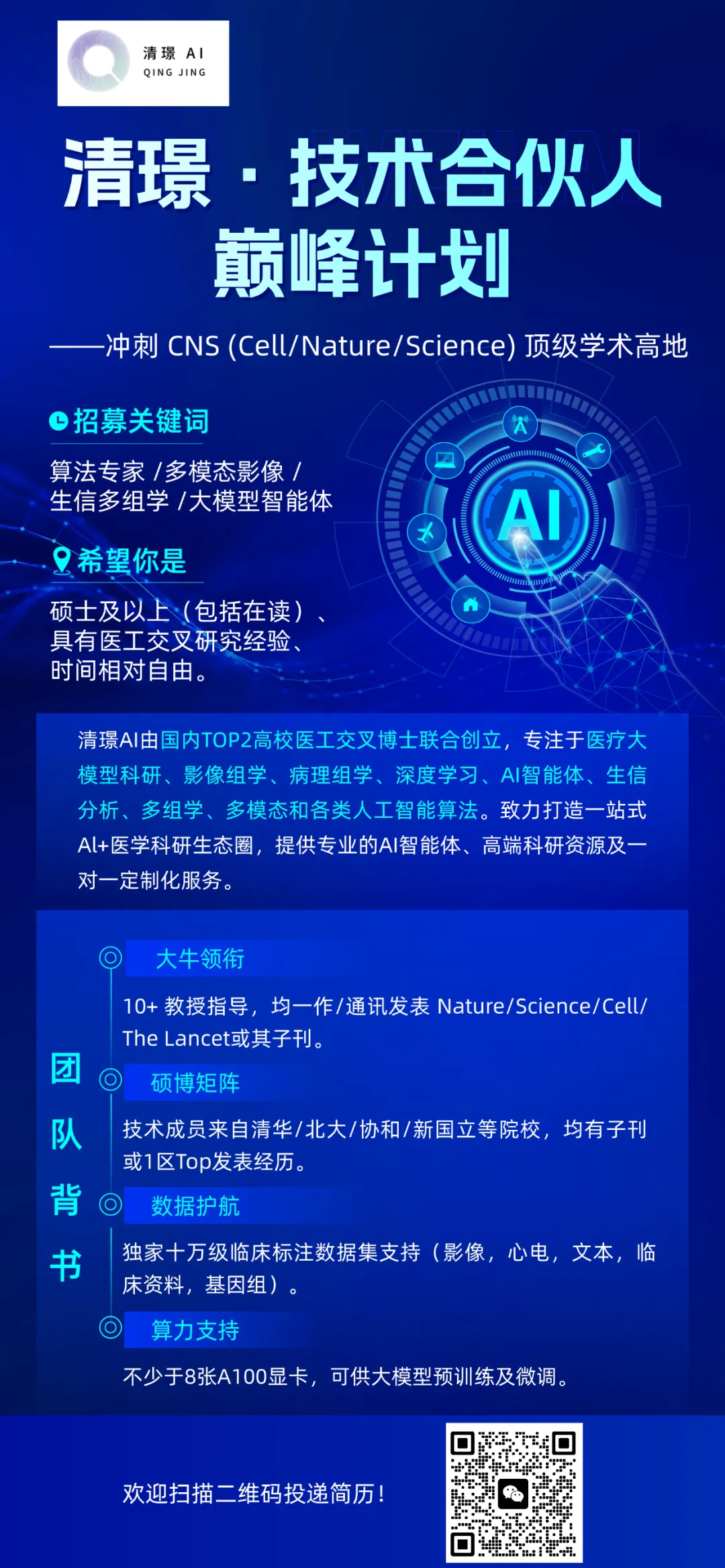 在医学科研与人工智能的交叉路口,我们正在寻找一群志同道合的探索者——如果你渴望用技术改变医学研究的未来,如果你希望在顶级学术舞台上留下自己的名字,清璟AI邀你并肩,共赴一场科研与技术的巅峰之旅。