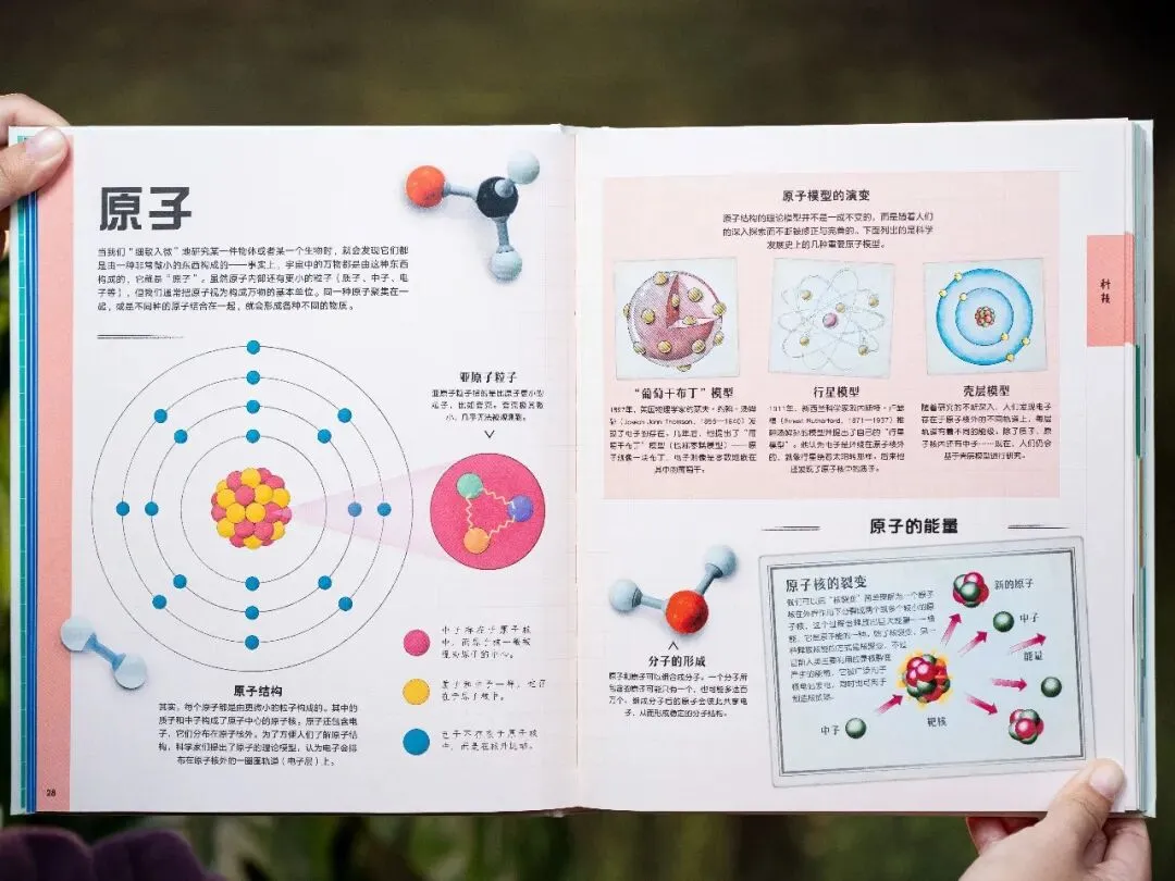 讲“原子”,把结构画给孩子看,中子、质子、电子间的关系一眼明白。