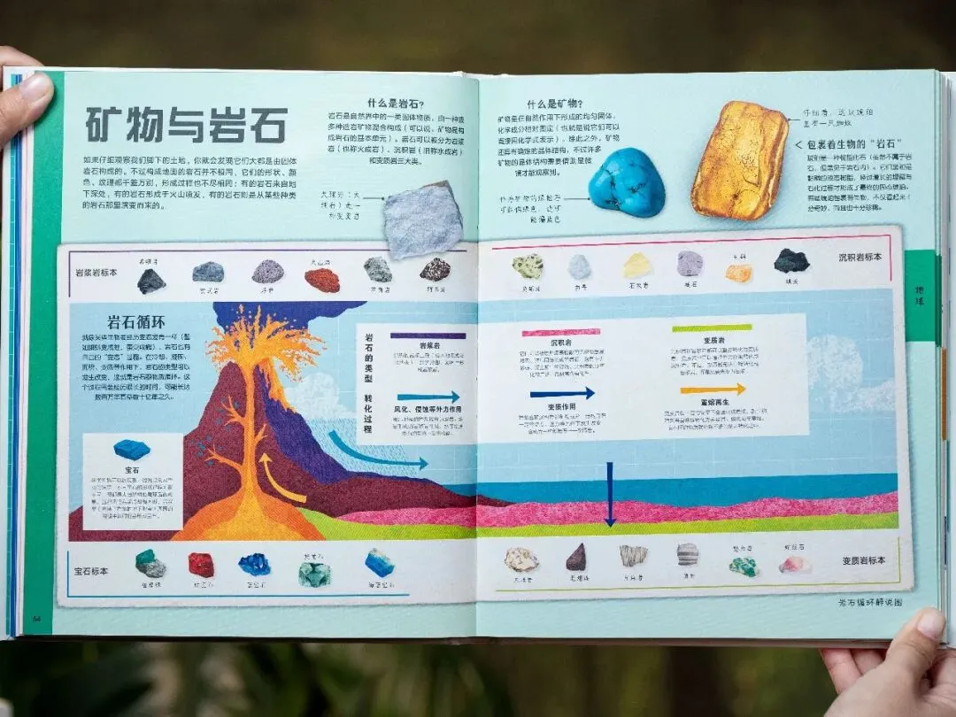 从矿物、化石、生物群落、森林、海洋,一路讲到板块运动、高山、水循环、气候、餐桌上的食物、城市……