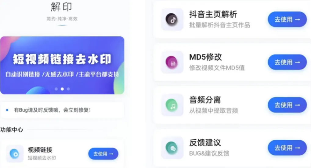 这款工具名叫解印,是专门针对视频、图集的无水印解析下载工具。它无需登录、完全免费,安装完成后可直接使用,全程无复杂步骤。