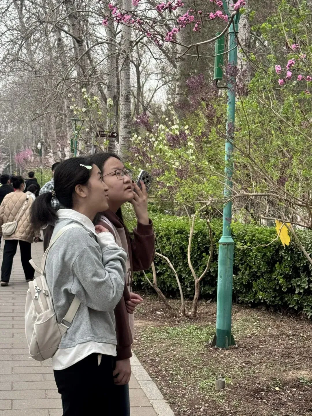 这当然是“对的”,却又显得有些单薄。但当有伙伴伸出手,轻轻触碰到低垂的花枝,指尖感受到花瓣的柔软与层叠,那一刻,信息被补全了——原来这是可以被触摸的春天。