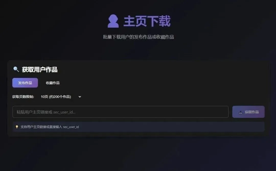2.可以批量下载博主首页发布的作品 复制主页的id和链接即可一键获取下载