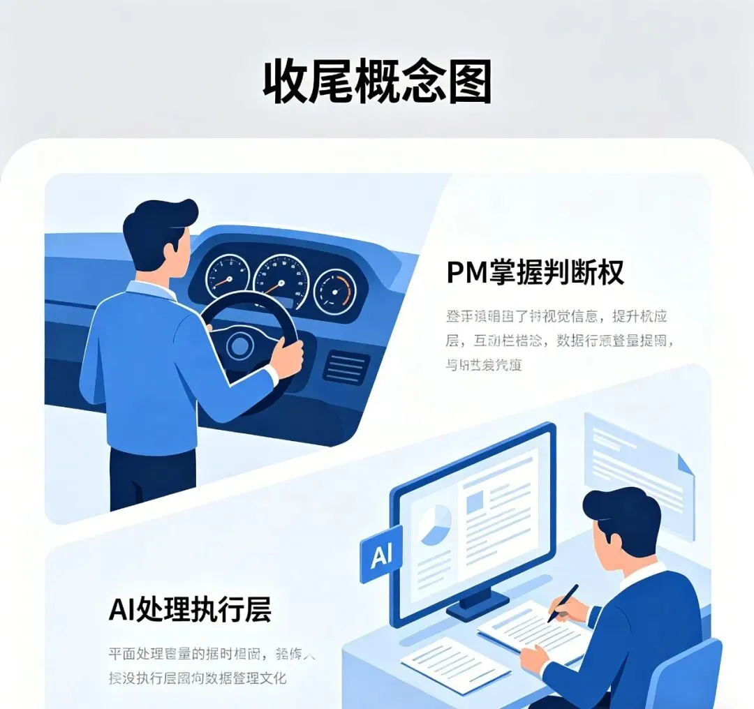 但这个前提必须说清楚,而且这个前提很重要。AI辅助撰写的前提,是输入足够清晰。如果你给AI的信息是模糊的,它输出的初稿也是模糊的,甚至可能比你什么都不写直接硬着头皮写还糟糕。所以这个环节对PM的要求不是降低了,是提高了。你必须先自己想清楚自己要什么,你跟AI的对话质量,取决于你自己脑子里的想法是否清晰。