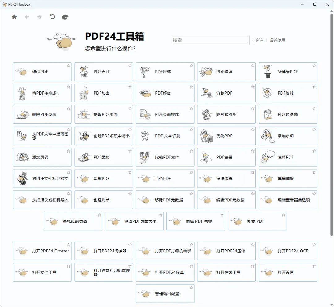 PDF24 Creator一款强大的PDF工具集PDF24 Creator 是一款功能全面的专业 PDF 处理工具,提供在线版和桌面版两种使用方式。该软件集成了多项实用功能,包括:专业的PDF文件编辑功能支持多种打印任务处理内置PDF阅读器多种格式的PDF文件转换PDF文件压缩优化OCR文字识别技术图文叠加等高级功能无论是日常办公还是专业需求,PDF24 Creator 都能提供完善的解决方案。在线版本:https://tools.pdf24.org/zh/原文地址:https://www.xiaoxinw.com/2224/