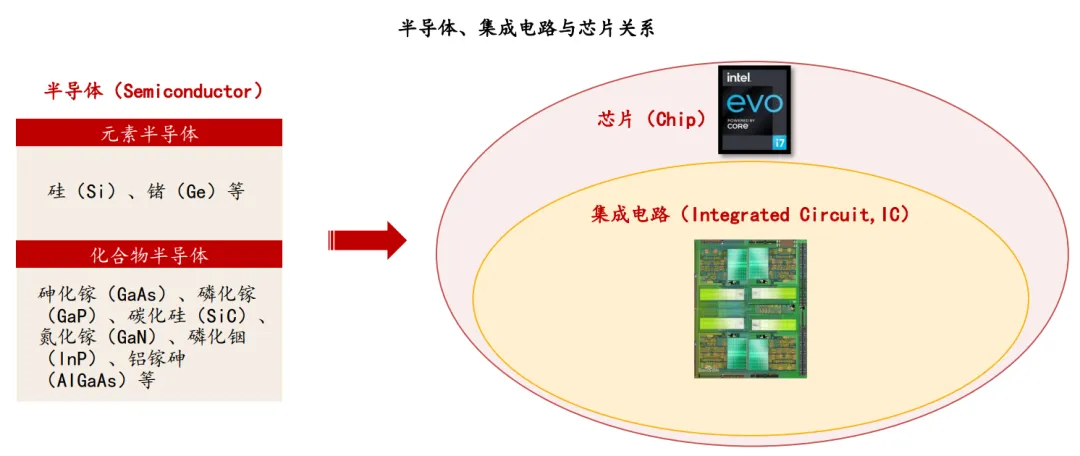 广义芯片包括了集成电路、传感器、分立器件、光电器件产品,狭义芯片单指集成电路。三者关系如下图:半导体>集成电路≈芯片