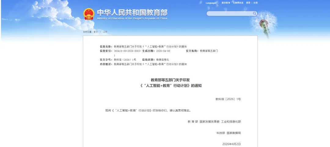 最近,教育部等五部门联合印发了《“人工智能+教育”行动计划》