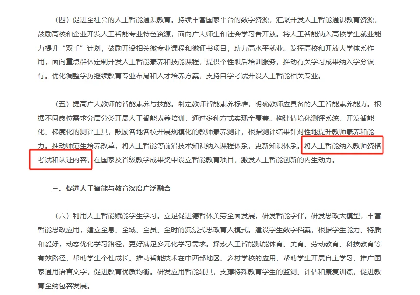 - 把AI纳入教师资格考试和认证 → 教师准入门槛变了