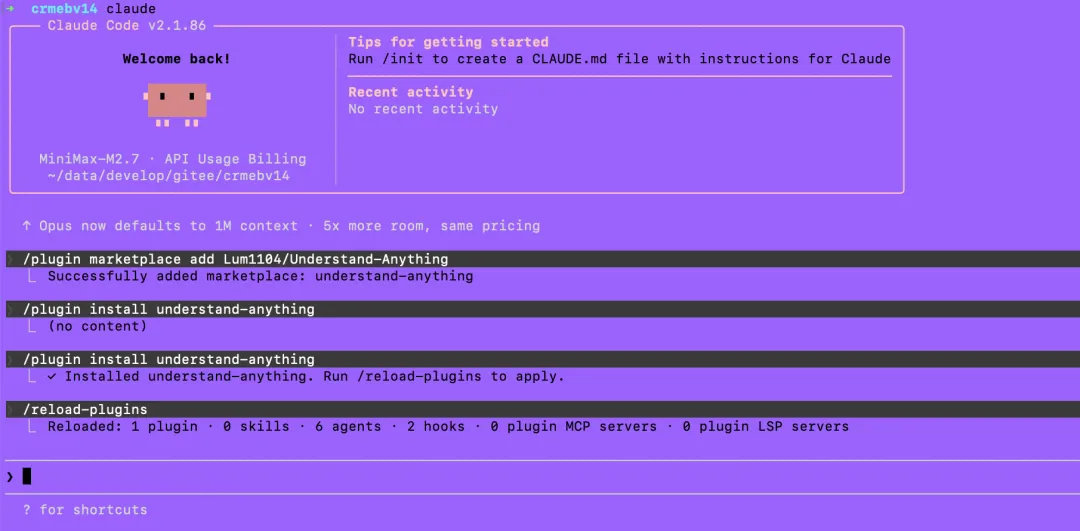 安装完成后,我们这里重启下插件,执行reload-plugins命令,然后看到: