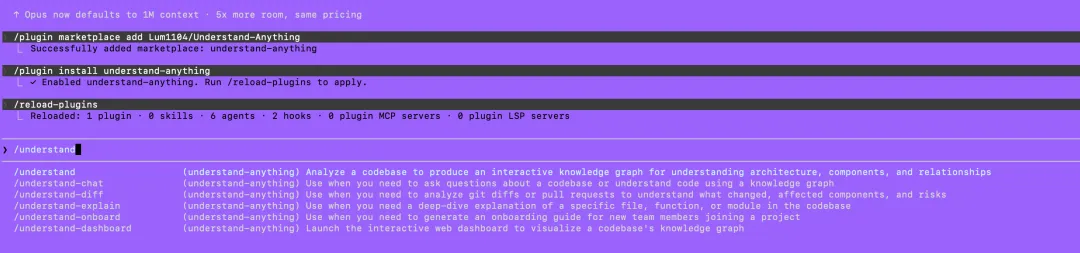 /plugin marketplace add Lum1104/Understand-Anything /plugin install understand-anything截图如下所示: