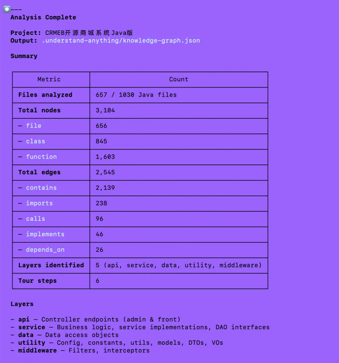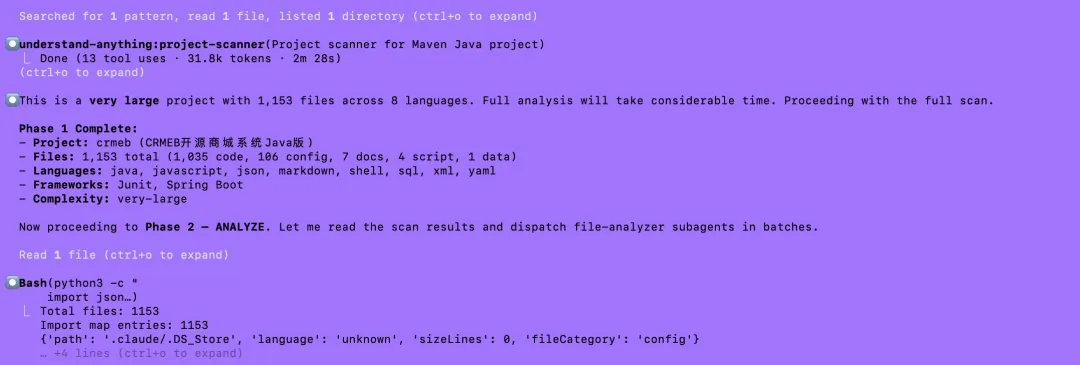 这个步骤比较耗时,当前我下载的这个CRMEB项目中的java文件大概有1000多个,Claude Code帮我搞了40个多个批次去执行。