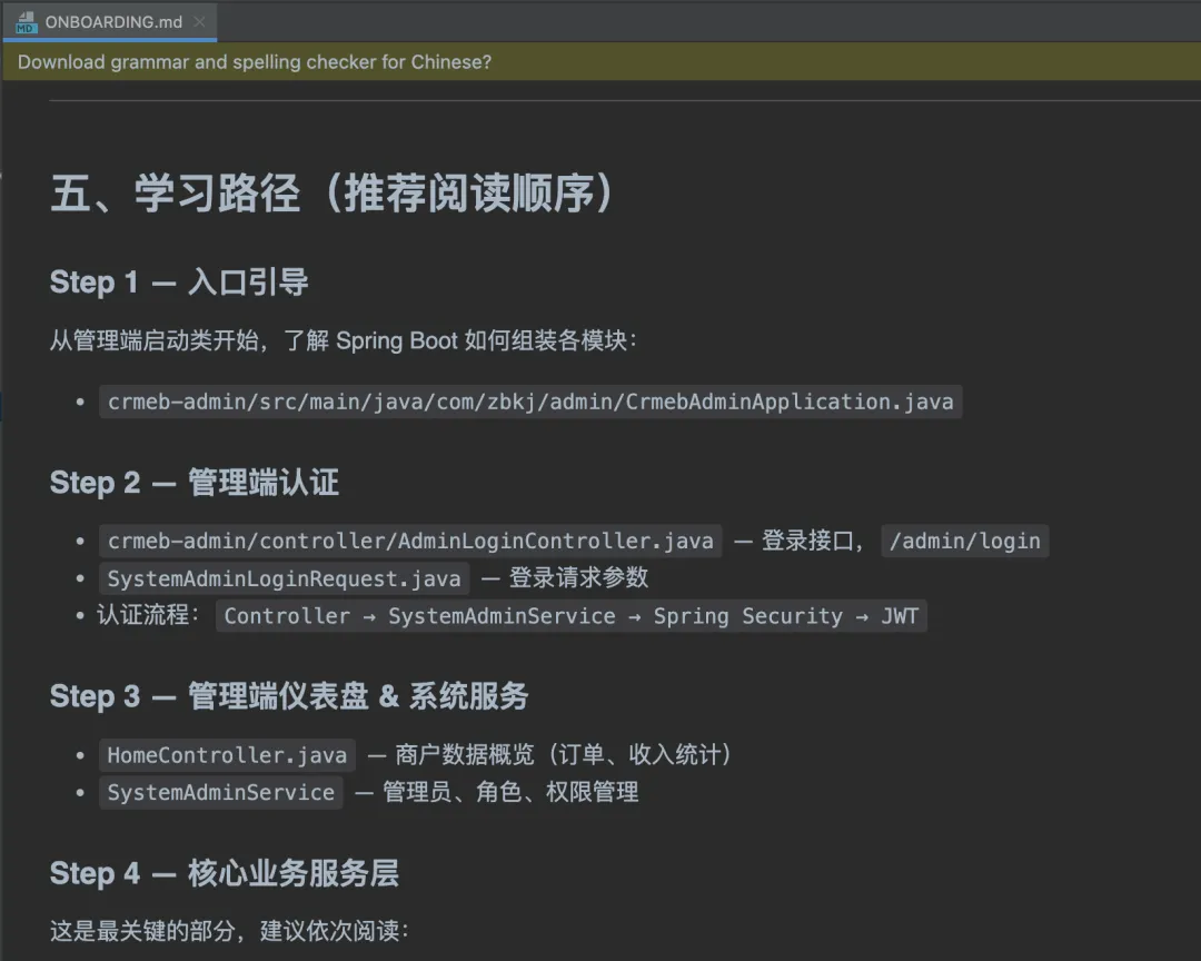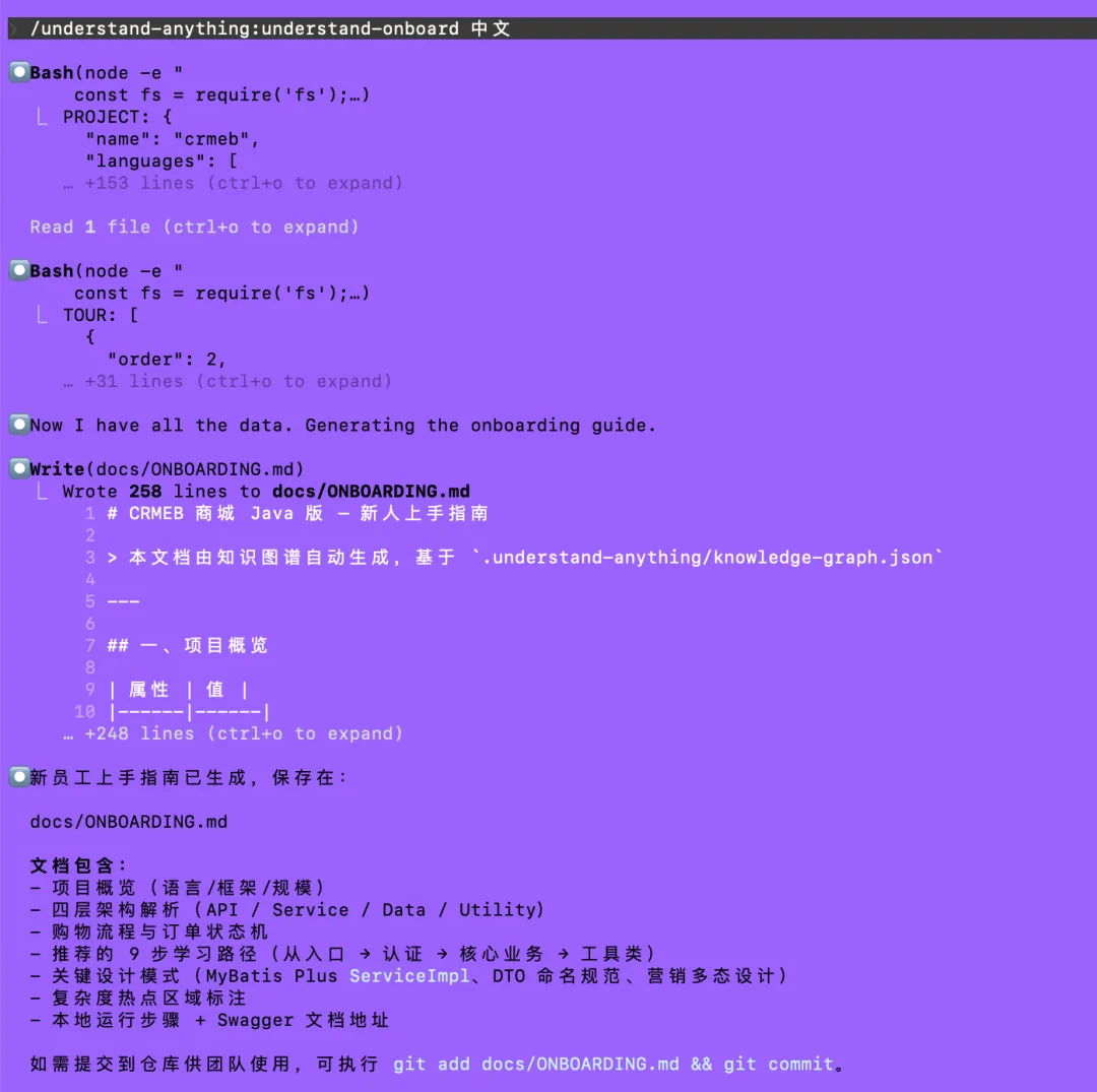 我们可以执行/understand-onboard这个技能,然后让它根据我们的需要给我们写一写指南,例如: