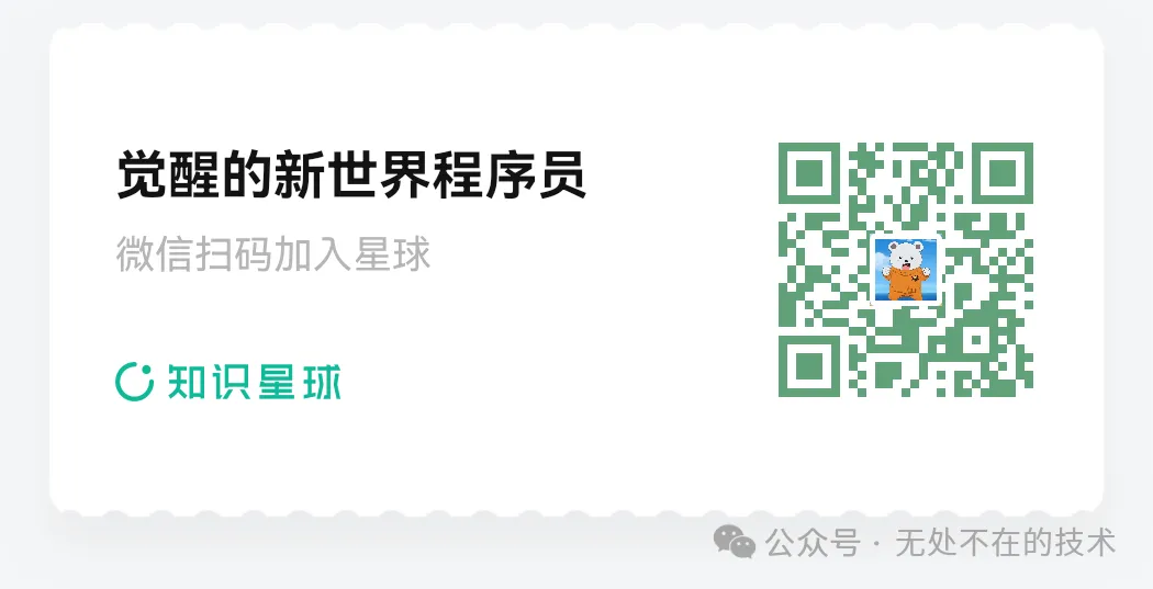 喜欢的可以加入我的免费知识星球:觉醒的新世界程序员,或者付费的知识星球:觉醒的AI技术经验,随时与我沟通,交流技术与想法。