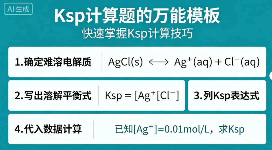 其实Ksp计算真的不用怕,它就是个“套路王”——不用死记硬背太多东西,核心就是3点:记准万能公式、分清4类常考题型、避开稀释和次方的坑。