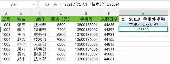 适用场景:求 Q1 季度手机类总销售额、求销售部男员工总薪资、求北京地区 VIP 客户总订单