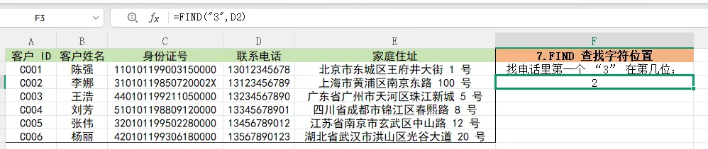 演示案例:查找手机号中数字“3”第一次出现的位置