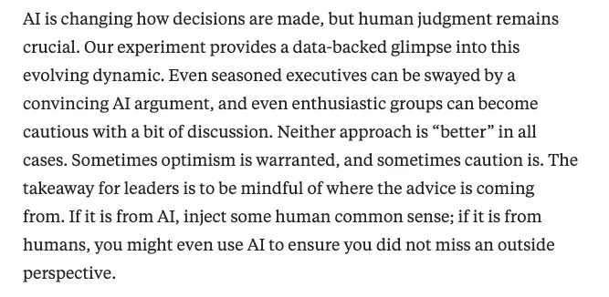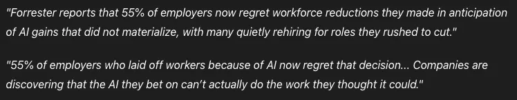 AI捏出来的“大力丸”:让原本不行的老板又觉得自己行了Part.01赛博时代的“大力丸”:幻觉的诞生在AI时代,许多原本业务能力平庸的老板突然觉得自己“行了”。以前需要花重金请专家、熬夜改方案、反复打磨设计的技术黑盒,如今只需一句Prompt,就能秒出70分的成品。代码生成、设计图、文案报告、数据分析……曾经高不可攀的专业门槛,被AI轻轻抹平。但是,2025年7月,《哈佛商业评论》发表的一项真实研究,把这种“幻觉”讲得特别透彻:研究者找来近300名高管和经理,先给他们看芯片巨头英伟达(Nvidia)最近的股价数据,让他们先自己预测“一个月后的股价会是多少”。然后把人分成两组:一组可以随便问 ChatGPT 帮忙预测,另一组只能和同事正常讨论。之后,大家可以修改自己的预测。结果让人意外:用ChatGPT的那组高管,看完AI的回答后,预测明显变得 更乐观 (平均把股价预测往上调了约5美元),也变得 更自信 (喜欢给出精确到小数点后的数字)。但最关键的是——对比一个月后的 真实股价 ,他们的预测准确性反而比原来自己猜的时候 更差 了!而和同事讨论的那组,则变得更谨慎,预测反而更准一些。为什么会出现这种反差?因为AI的回答总是语气肯定、细节丰富,看起来“专业又聪明”,容易让人瞬间产生“我现在懂了、形势大好”的强烈幻觉,从而过度乐观。但AI并不真正理解市场背后的复杂风险,它给的只是基于过去数据的概率性输出,结果反而把人带偏了。另一边,Forrester报告指出,55%的因AI而裁员的公司已经后悔,因为AI未能完全填补人类留下的空缺,导致机构知识流失,不得不重新招聘部分岗位。这种“秒出成果”的快感,像一颗赛博大力丸,让老板从对专业的敬畏,迅速转变为对结果的轻慢。“我随便说两句就比他们做得好”,老板们开始这么想。你有没有发现,身边的老板最近都开始“全能”了?这幻觉,是不是来得太容易了?Part.02权力补偿心理:重夺失去的“领地”过去,老板不插手具体工作,往往是因为听不懂、看不明白。现在不同了。AI永远不会顶嘴,不会质疑,不会说“你这个要求不专业”。它绝对顺从,像最听话的工具人。老板终于在AI身上找回了久违的掌控感。以前被专业团队“架空”的领地,现在要一寸寸夺回来。结果就是微操地狱的诞生:不少老板要求团队把所有旧内容用AI重写,自己反复迭代prompt,直到产出“看起来专业”的版本,却常常加入离谱的幻觉内容。员工私下吐槽:“我们现在不是在干活,是在给AI当保姆。”你有没有被这样的老板“微操”过?那种“如臂使指”的快感,老板爽了,团队却快崩了。Part.03山寨伟哥效应:看起来行,用起来不行AI确实能把下限拉高,却永远给不了真正的上限。它基于概率生成“平庸的正确”——逻辑自洽、语言华丽,却缺乏对真实商业战场的血性洞察。最典型的例子发生在2025年10月:Deloitte澳大利亚分公司为政府做了一份关于福利合规的报告,合同总金额约44万澳元(部分退款后实际涉及约29万澳元)。报告大量使用AI生成,结果出现严重错误,包括引用不存在的学术论文和编造的联邦法院判决引文。事件曝光后,Deloitte不得不向政府部分退款,并发布修订版。Part.04战术勤奋的遮羞布:掩盖战略的荒芜老板们在AI上展现出惊人的“勤奋”:每天让AI产出上百篇内容、几十张图、无数份报告,看似带头冲锋,实则是在用战术勤奋掩盖战略荒芜。他们迷信AI的性价比,低成本、高速度,本质上是对专业价值的嫉妒,以及对“随便剥削”自由的向往。真正需要花时间沉下心来思考战略方向、洞察行业本质、做出艰难取舍的时候,他们选择了最轻松的那条路——继续喂AI。Part.05副作用与回旋镖:公司体质的崩坏长期服用这种“山寨伟哥”,公司体质开始系统性崩坏。MIT NANDA项目2025年发布的《The GenAI Divide》报告显示, 95%的企业生成式AI试点项目未能带来可衡量的业务影响 ,只有极少数真正实现价值。你敢想象,当所有老板都吃同一种“大力丸”时,市场会变成什么样?2025年已有明显“AI疲劳”迹象,许多公司开始放弃大量AI实验项目。Part.06药是好药,但命得自己救AI是这个时代最强大的工具,它应该是专业人士的越野车,帮助真正懂行的人跑得更快、更远,而不是老板自欺欺人的兴奋剂。真正的强大,从来不是手里掌握了多少组Prompt,而是对商业规律的深度尊重、对人性的深刻理解,以及敢于直面现实的勇气。老板们,吃大力丸可以,但别指望它替你跑完全程。药再好,命还得自己救。把AI当放大器,而不是拐杖;把省下来的时间,用来真正变强,而不是继续自欺。否则,当幻觉散去,留下的只会是更虚弱的自己和更脆弱的公司。