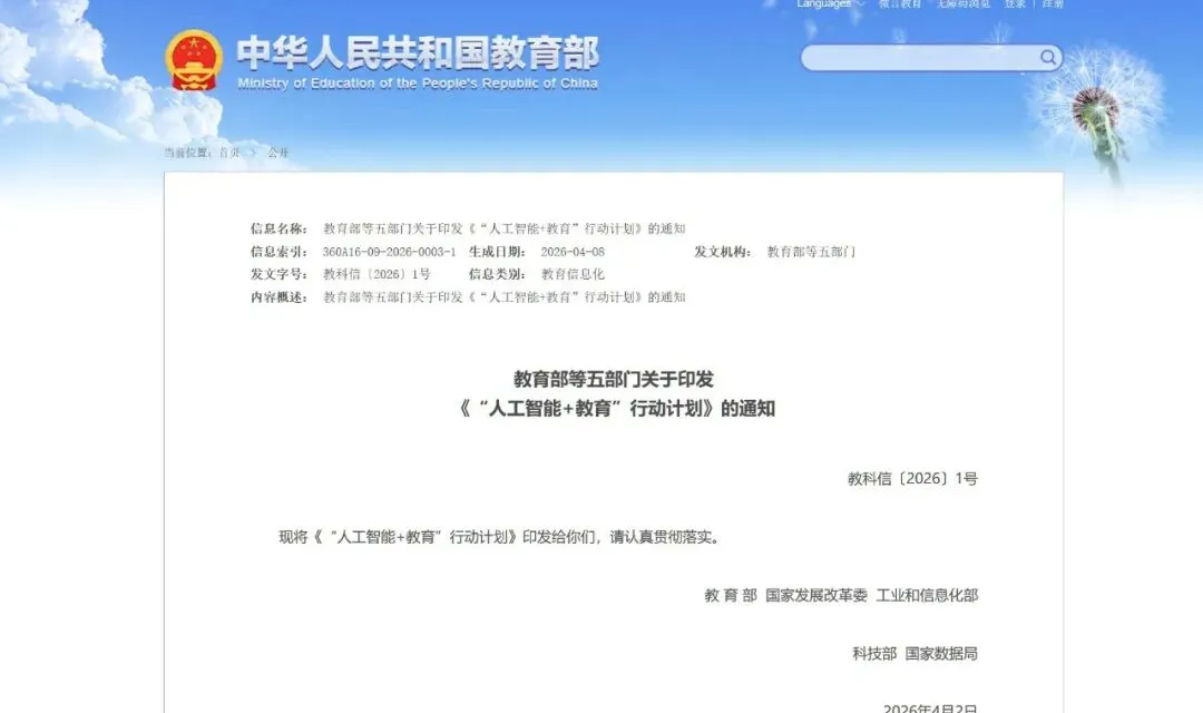 近期,教育部等五部门联合印发《“人工智能+教育”行动计划》(以下简称《计划》),这份文件不是一份简单的部署清单,而是对“培养什么样的人、怎样培养人、为谁培养人”这一核心命题的数字化回应。