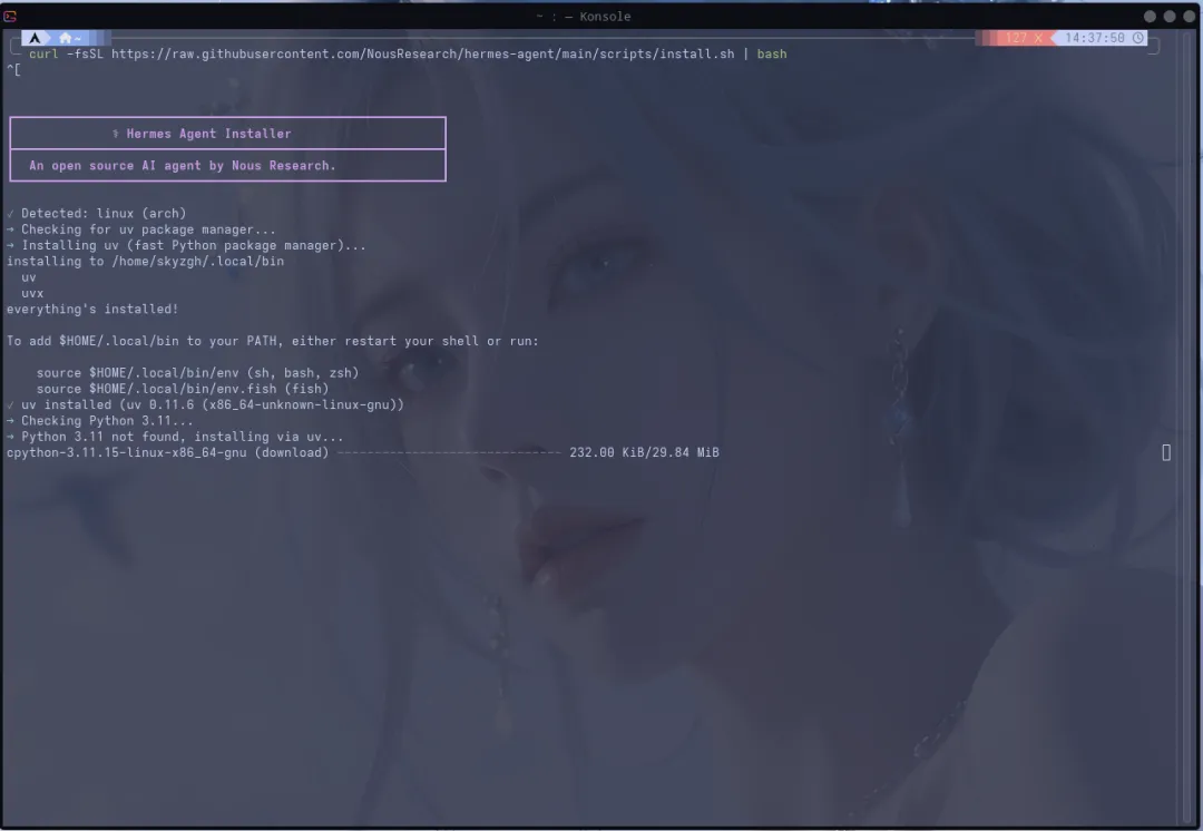 最近也老是刷到Hermes的相关视频,所以按耐不住想尝试一下,下面就是整个安装过程: