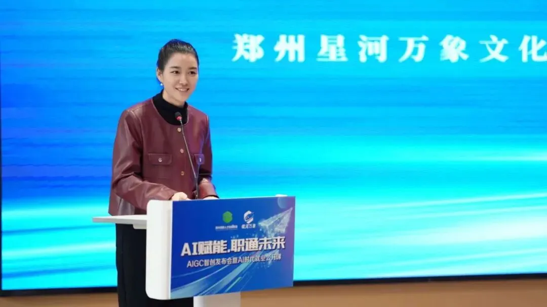 4月11日,由郑州高新人才发展集团有限公司主办,郑州星河万象文化科技有限公司、郑州天健智慧园区运营管理有限公司、河南知澜数媒科技有限公司协办的“AI赋能,‘职’通未来”AIGC智创发布会暨AI时代就业公开课,在高新·数算产业园一楼报告厅启幕。