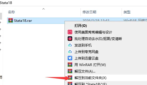 2:双击打开解压好的文件夹,选中【SetupStata18.exe】右键选择【以管理员身份运行】。