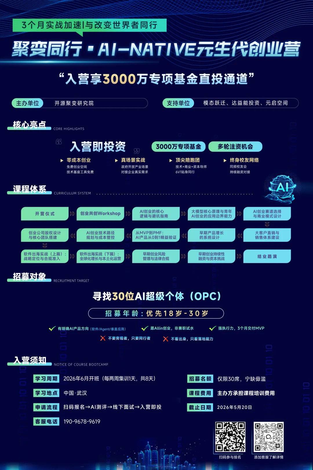 由开源聚变人工智能研究院主办,联合模态跃迁、达益能投资等机构共同支持。打造为期3个月的实战型创业加速营,帮助AI创业者从0到1,真正跑通产品与商业闭环,并对接资本与产业资源。