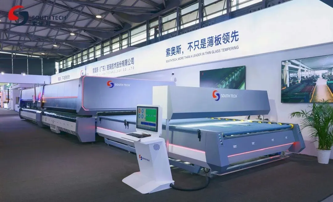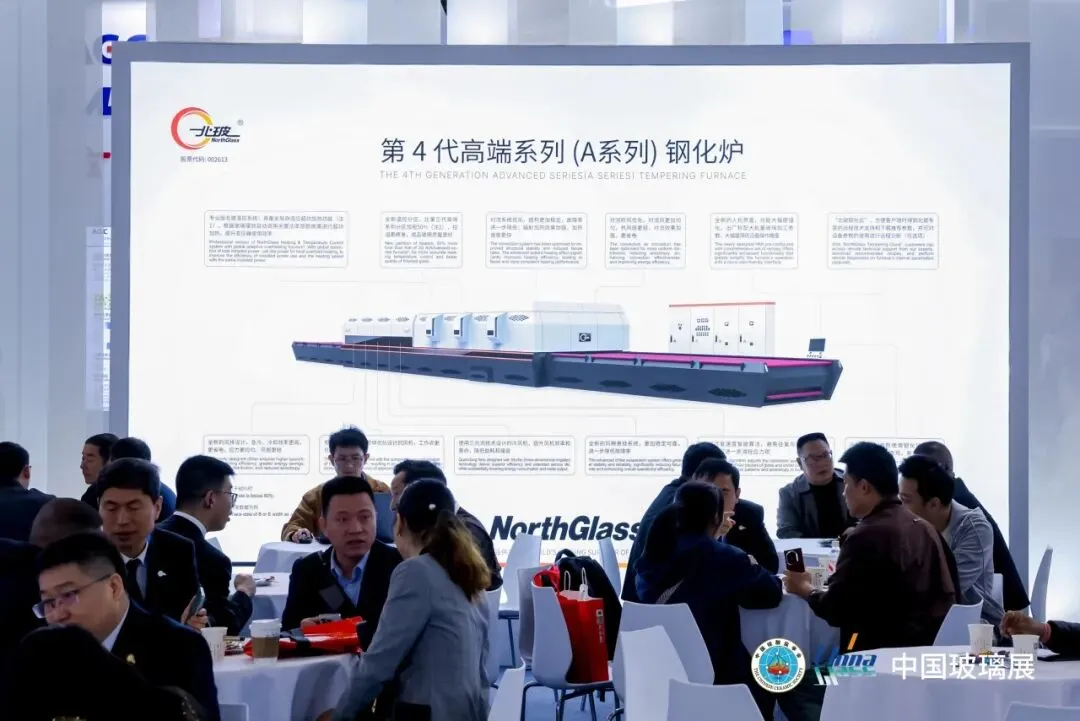 在装备技术领域,北玻展示了第四代高端钢化炉。该机型具备全局自适应超功加热功能,官方数据显示加热速度可提升约 5%。全新的对流系统优化了热场分布,大幅提升玻璃成品平整度与通透度。