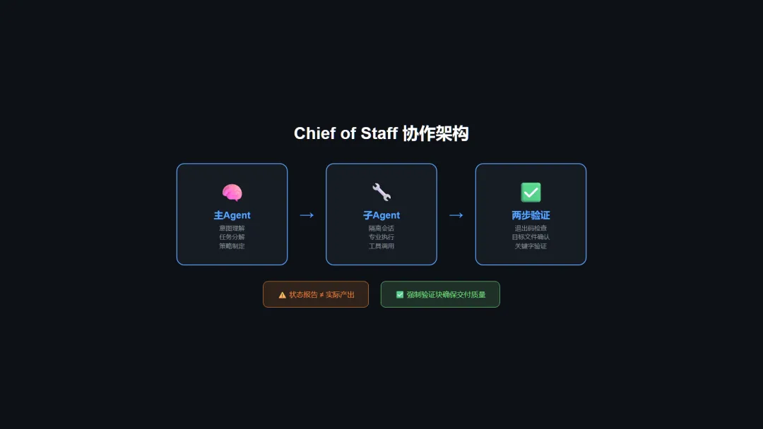 OpenClaw支持多Agent协作模式,采用"Chief of Staff"(参谋长)架构: