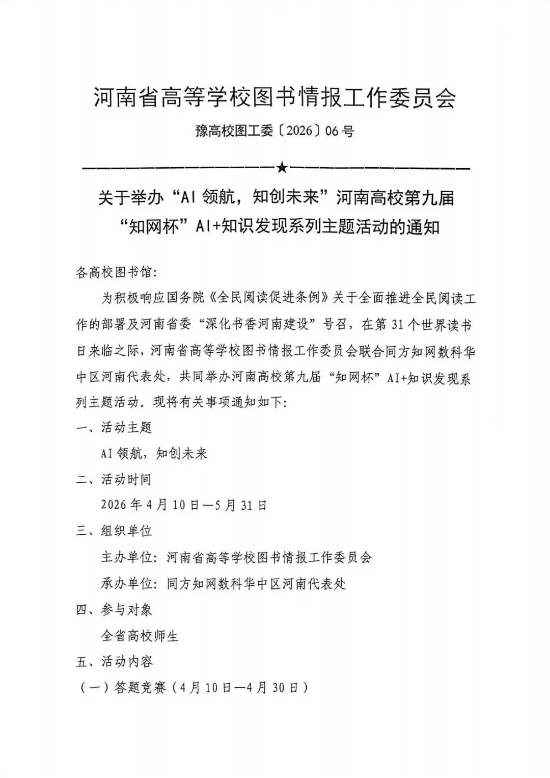 “读书不觉已春深,一寸光阴一寸金。”四月风起,桐花满径。在第31个世界读书日到来之际,“AI领航,知创未来”河南高校第九届“知网杯”系列主题活动如约而至。读书月,是春日里最深的耕耘;AI,是时代赠予读书人的新笔。我们以“知网杯”为桥,将书香与前沿科技相融,助力全省高校师生在AI时代更好地获取知识、发现新知、创造新知。