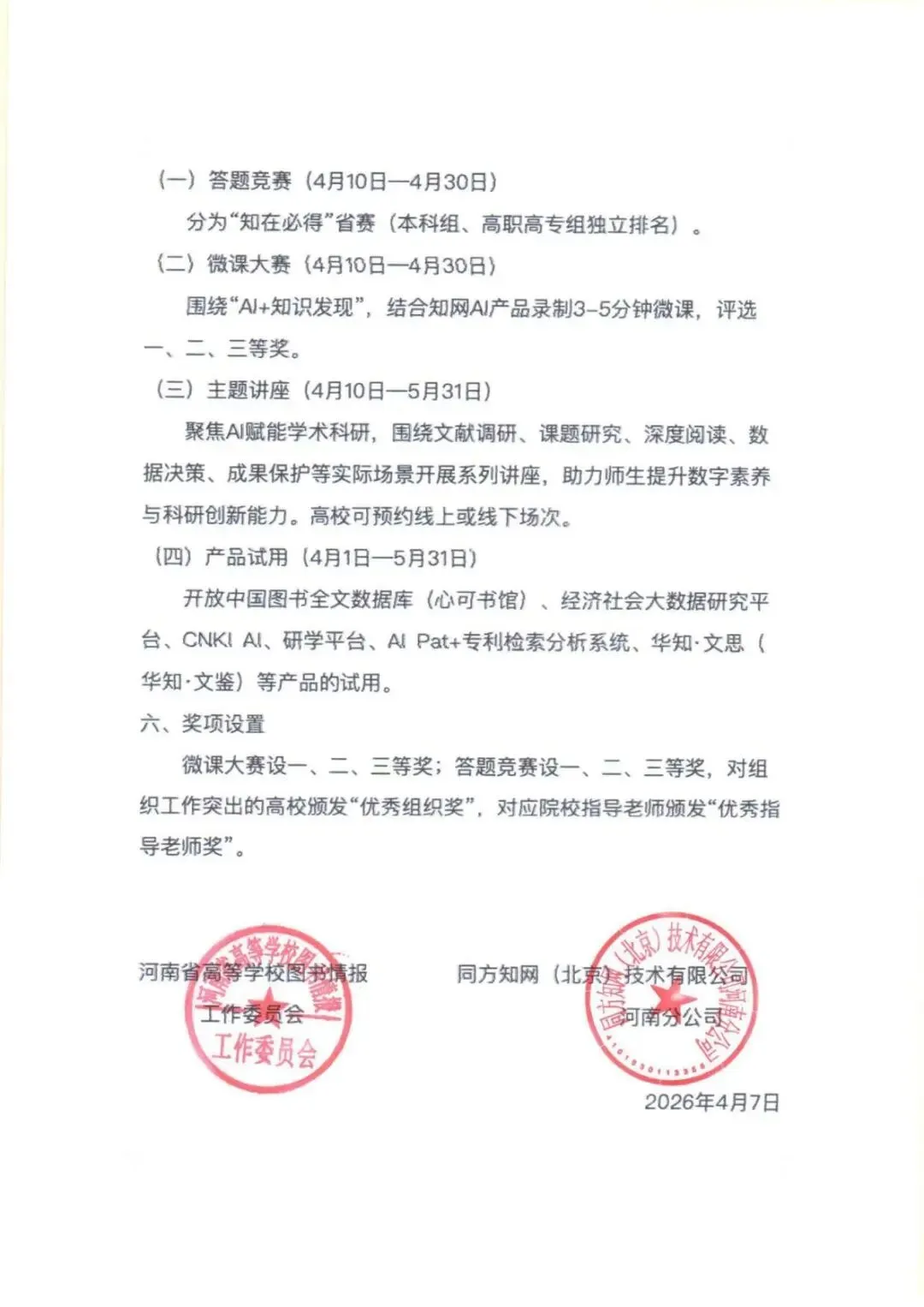 本科组、高职高专组各取参与人数前3名的高校图书馆,颁发省级证书+奖品。