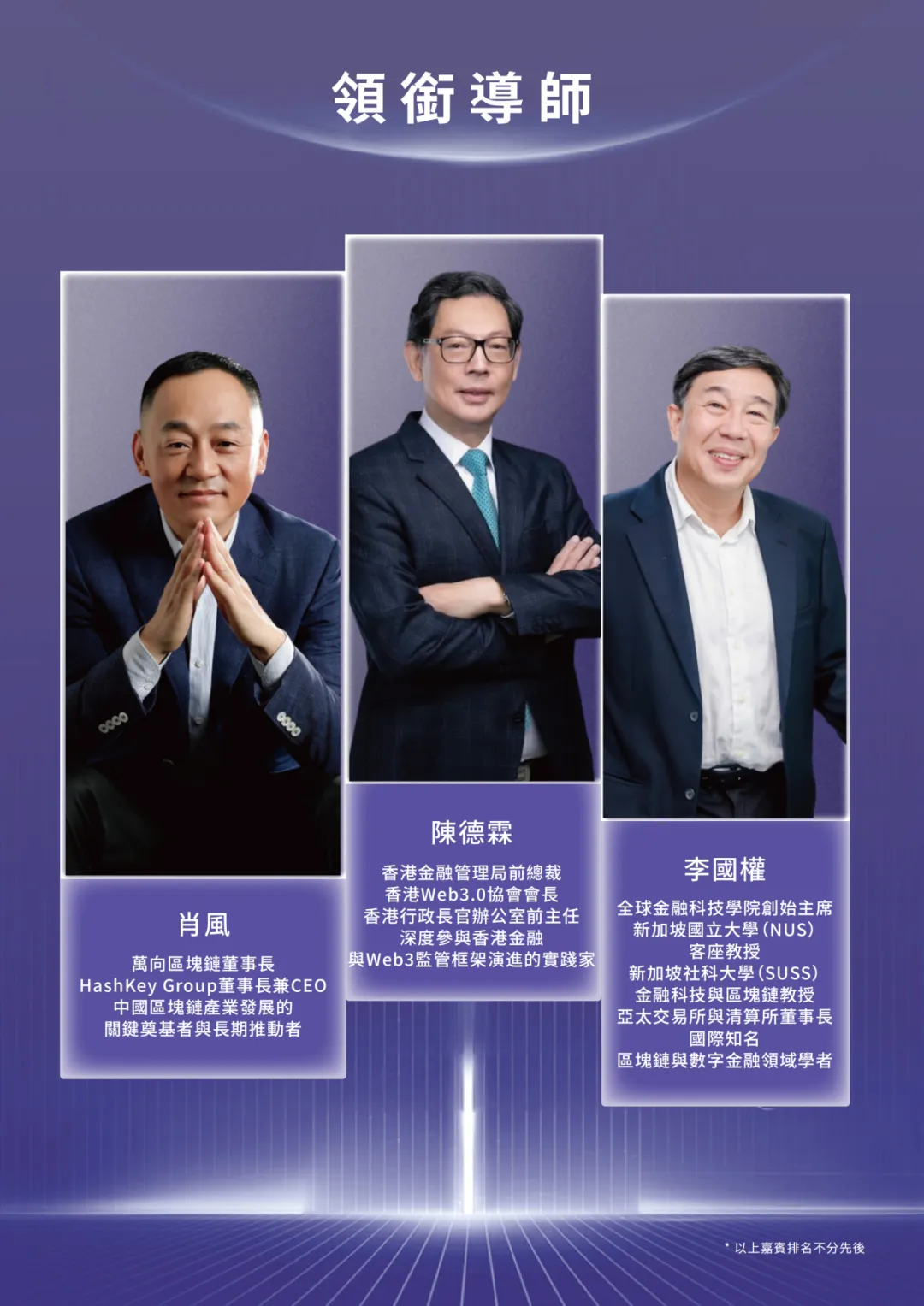Web3领袖项目,由全球金融科技学院、HashKey Group和前沿科技研究院共同推出,旨在构建一个横跨监管科技、实体产业、Web3全球决策网络、行业校友网络的生态。