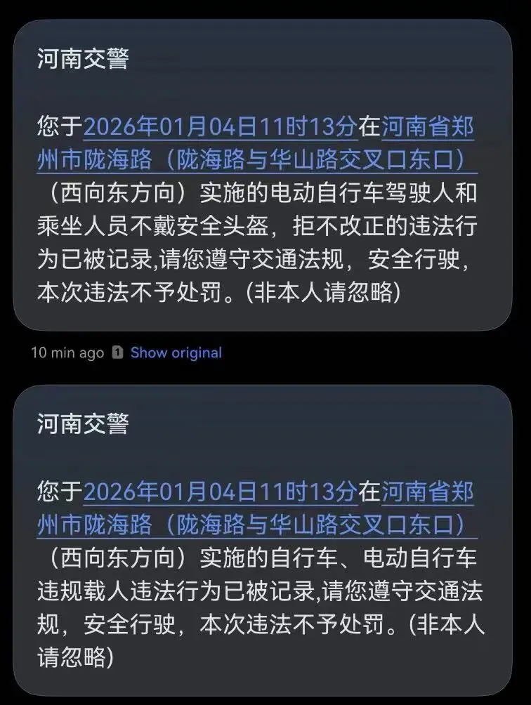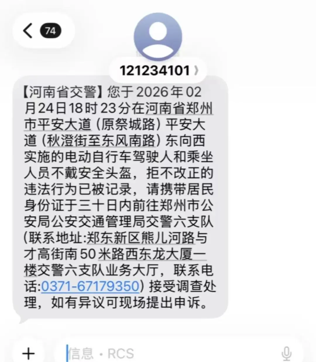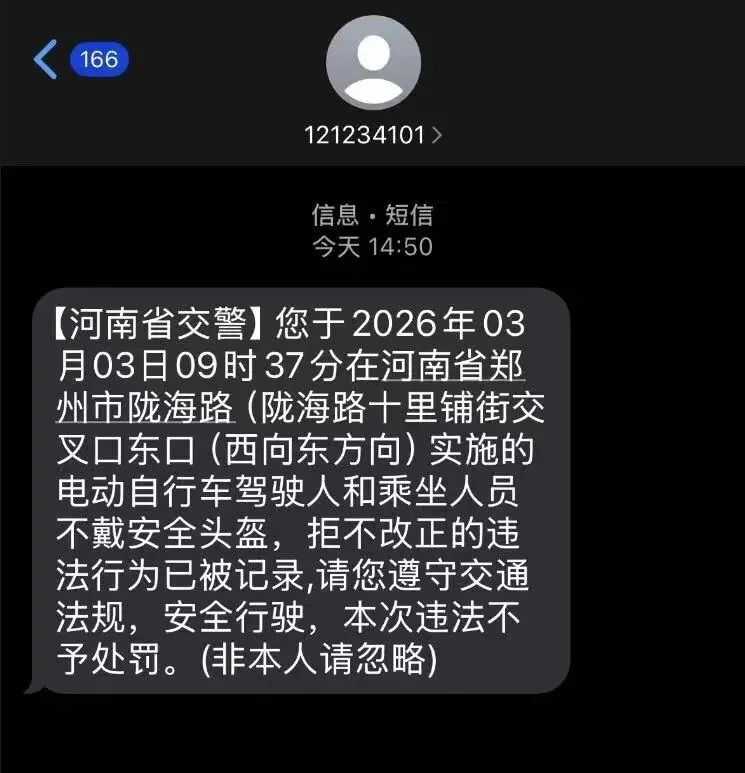 通过“河南交警”短信向违法当事人精准推送交通违法告知,明确违法事实、法律依据及指定接受处理的交警支队,引导当事人主动接受处理。