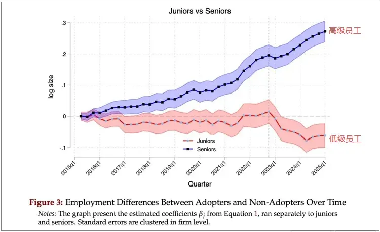 被AI威胁最大的,正是那些缺乏创造力的“普娃”。过去8年,AI不断吞掉那些初级员工的机会。而高级员工受影响很少。