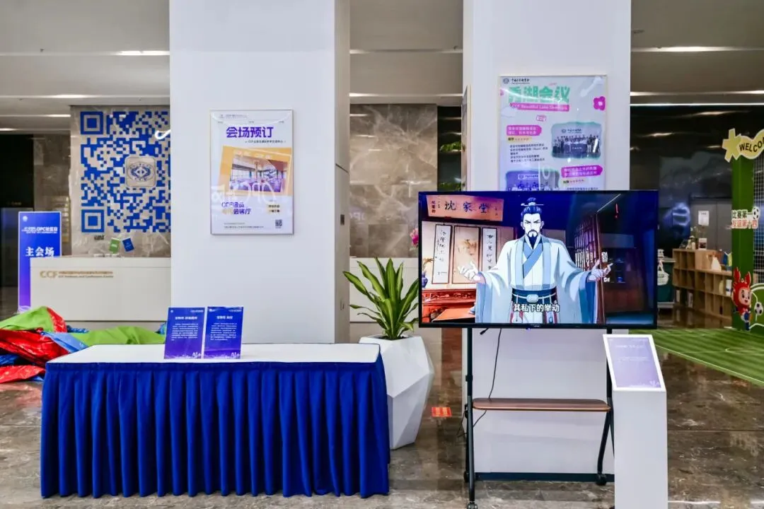 会场外,深元未来、欲言文化企业的文创产品和AI漫剧吸引了参会人员驻足围观。