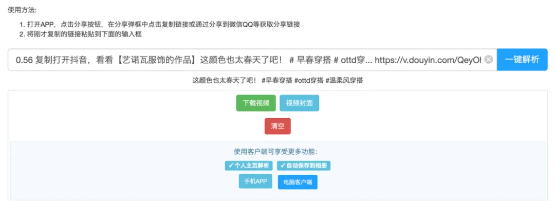 获取对标视频:找到商品详情页里的实拍带货视频,或者用对标账号的动作视频,下载下来(电脑版无水印下载方法我之前讲过,搜“无水印”https://tkqsy.com/)。选动作自然、手部动作少的视频——手部动作越少,AI穿帮越少。