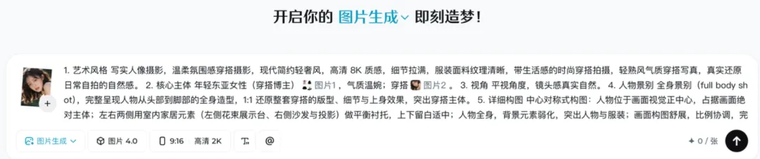 方法二:SeeDance 2.0 直接出提示词(更自然,但消耗积分多一点)直接给即梦输入下面的提示词模板(伙伴们可以根据自己服装改):
