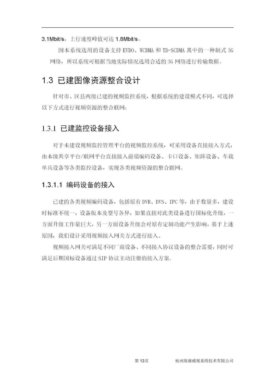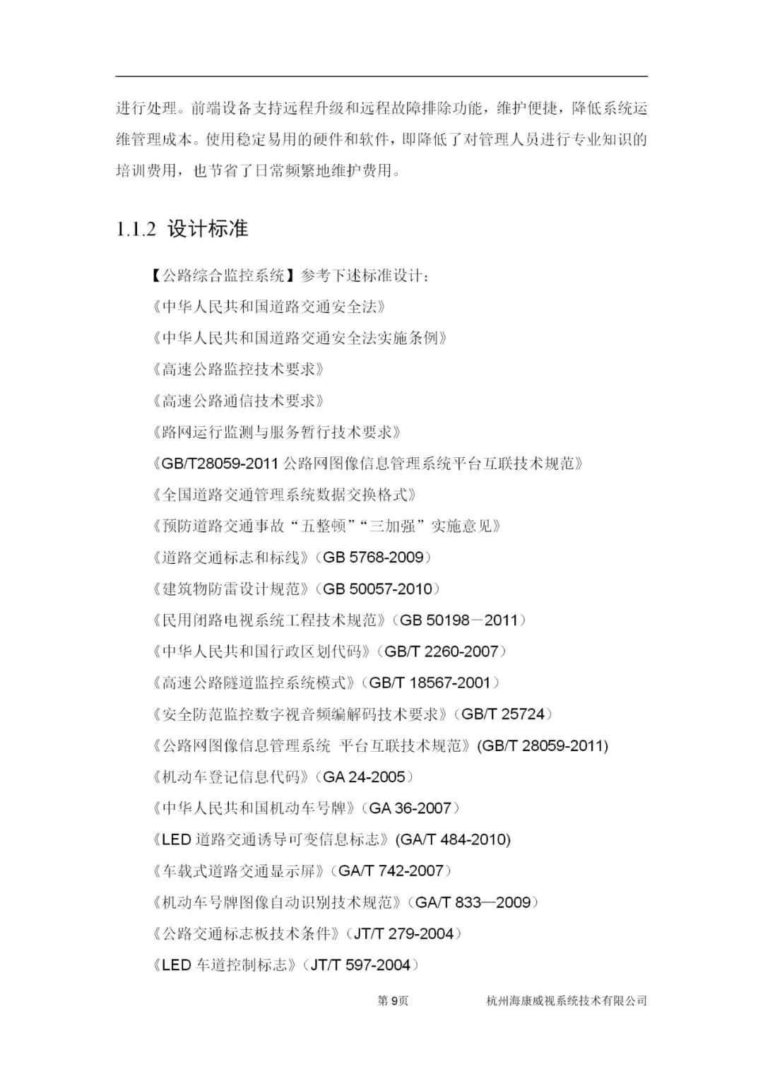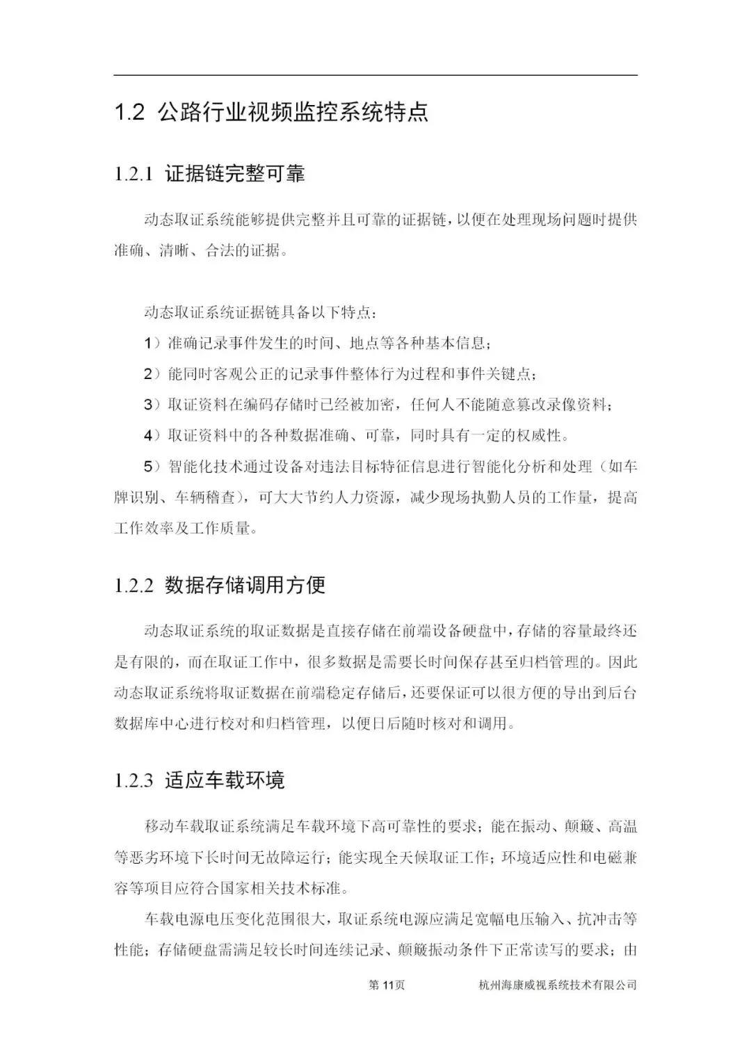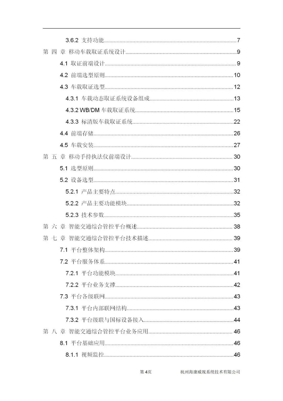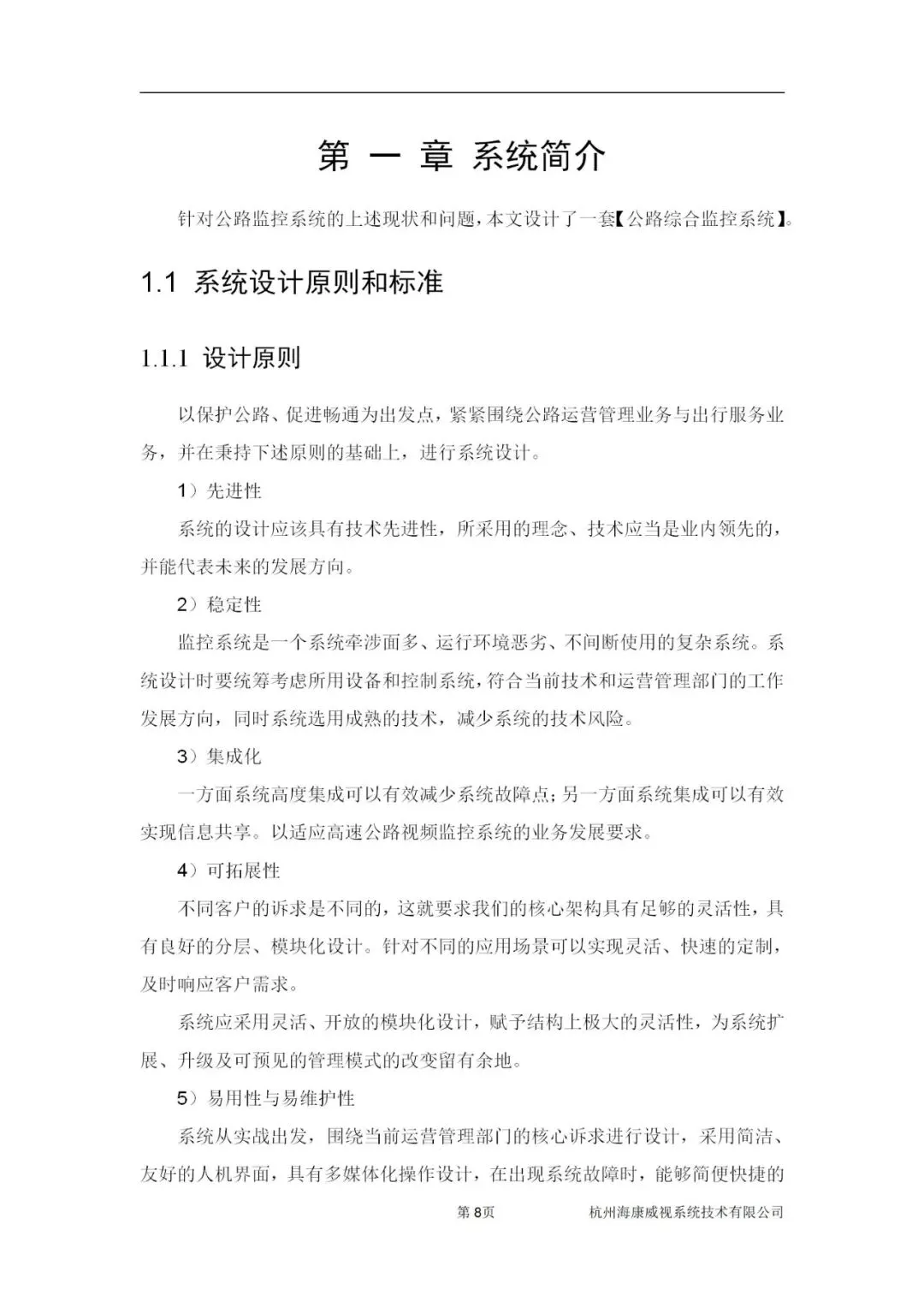 第 一 章 概述11 1.1 背景11 1.2 实施公路全程监控系统的意义11 1.3 公路监控系统面临的挑战12 第 二 章 系统简介14 2.1 系统设计原则和标准14 2.1.1 设计原则14 2.1.2 设计标准15 2.1.3 系统架构17 2.2 公路行业视频监控系统特点17 2.2.1 证据链完整可靠17 2.2.2 数据存储调用方便18 2.2.3 适应车载环境18 2.2.4 系统可操作性强18 2.2.5 网络适应性强19 2.3 已建图像资源整合设计19 2.3.1 已建监控设备接入20 2.3.2 已建监控平台联网25 第 三 章 固定监控系统详细设计28 3.1 高清视频监控子系统28 3.1.1 子系统结构28 3.1.2 系统数据流向29 3.1.3 外场监控设计29 3.1.4 典型产品推荐31 3.2 高清卡口系统35 3.2.1 系统架构35 3.2.2 系统组成36 3.2.3 系统功能37 3.2.4 硬件设备配置原则40 3.2.5 设备选型41 3.3 道路监控子系统45 3.3.1 设计目标45 3.3.2 设计思想45 3.3.3 子系统结构46 3.3.4 系统数据流向47 3.3.5 具体监控设计49 3.3.6 典型产品推荐52 3.4 公路安防子系统53 3.4.1 设计目标53 3.4.2 设计思路54 3.4.3 系统架构54 3.4.4 系统组成56 3.4.5 系统功能56 3.4.6 典型产品推荐57 3.5 人脸抓拍比对系统63 3.5.1 系统架构63 3.5.2 系统功能0 3.5.3 摄像机架设要求3 3.5.4 性能指标4 3.5.5 主要设备选型5 3.6 视频质量诊断系统6 3.6.1 系统架构7 3.6.2 支持功能7 第 四 章 移动车载取证系统设计9 4.1 取证前端设计9 4.2 前端选型原则10 4.3 车载取证选型12 4.3.1 车载动态取证系统设备组成13 4.3.2 WB/DM车载取证系统15 4.3.3 标清版车载取证系统22 4.4 前端存储26 4.5 车载安装27 第 五 章 移动手持执法仪前端设计30 5.1 选型原则30 5.2 设备选型31 5.2.1 产品主要特点32 5.2.2 产品主要功能模块32 5.2.3 技术参数35 第 六 章 智能交通综合管控平台概述38 第 七 章 智能交通综合管控平台技术描述39 7.1 平台整体架构39 7.2 平台服务体系41 7.2.1 平台功能模块41 7.2.2 平台业务支撑42 7.3 平台各级联网43 7.3.1 平台内部联网结构43 7.3.2 平台级联与国标设备接入44 第 八 章 智能交通综合管控平台业务应用46 8.1 平台基础应用46 8.1.1 视频监控46 8.1.2 交通监控51 8.1.3 系统管理61 8.1.4 运维管理69 8.1.5 流媒体管理71 8.1.6 存储管理72 8.1.7 报警管理74 8.1.8 电视墙管理76 8.1.9 跨网域访问77 8.1.10 指挥管理功能78 8.1.11 事件管理79 8.1.12 勤务管理功能81 8.1.13 环境监测系统82 8.2 平台增值应用85 8.2.1 车辆布控85 8.2.2 道路管控88 8.2.3 电子地图89 8.2.4 视频质量诊断97 8.2.5 短时流量预测99 8.2.6 智能研判99 8.2.7 交通信息分析108 8.2.8 交通事件监测109 8.2.9 智能行为分析112 8.2.10 移动违法集成113 第 九 章 网络分系统设计115 9.1 需求分析115 9.1.1 基本要求115 9.1.2 网络带宽需求115 9.1.3 网络质量要求116 9.2 网络整体架构设计116 9.3 接入传输网络设计117 9.3.1 前端接入网117 9.3.2 EPON技术优势118 9.3.3 接入线路选择119 第 十 章 二级监控指挥中心设计120 10.1 市局指挥中心设计120 10.1.1 指挥中心布局120 10.1.2 系统架构设计122 10.1.3 综合控制系统122 10.1.4 图像显示系统130 10.1.5 音视频多媒体接入135 10.1.6 监控工位设计135 10.1.7 网络设备部署135 10.2 区县监控中心设计136 10.2.1 系统架构设计136 10.2.2 解码控制系统137 10.2.3 图像显示系统137 10.2.4 音视频多媒体接入143 10.2.5 监控工位设计143 10.2.6 网络设备部署143 |