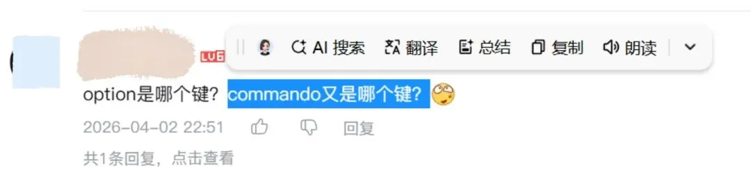 实操用法:Option/Alt + 空格唤醒→点击截屏→提取文字、翻译、追问