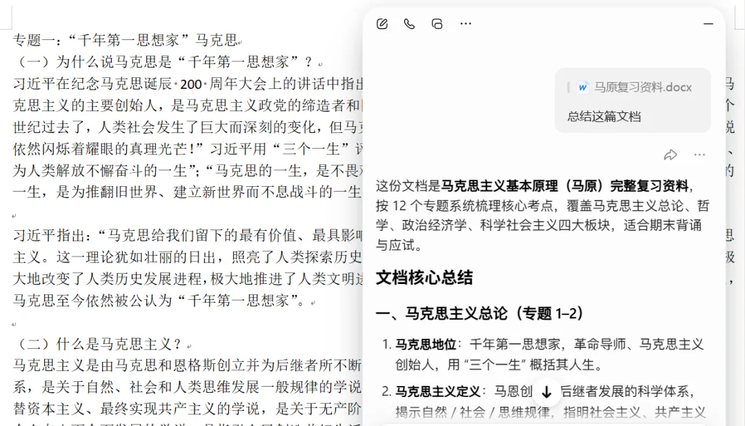 读长文、电子书时,打开侧边栏,随时提问总结、划重点,不用来回切换页面。