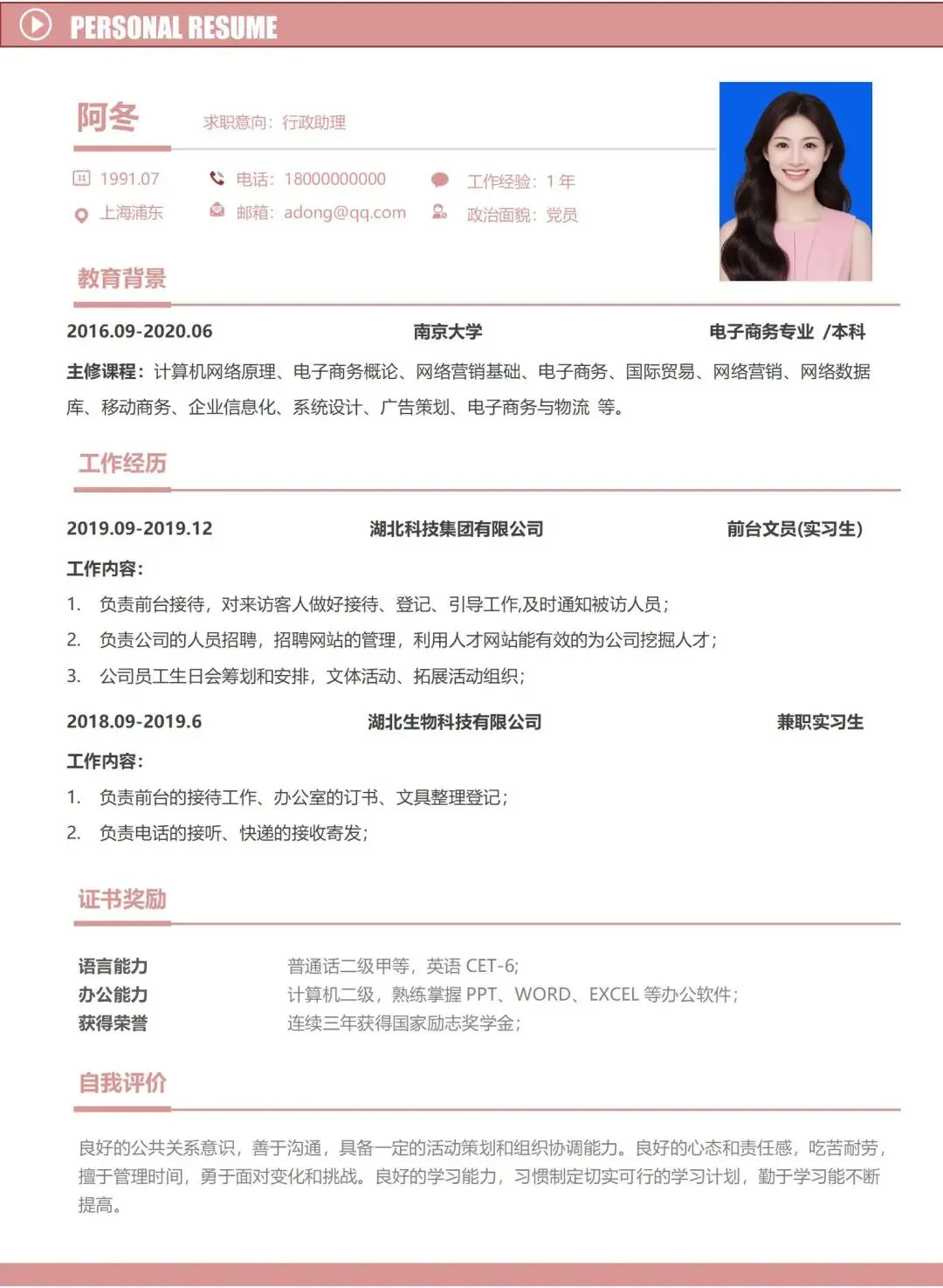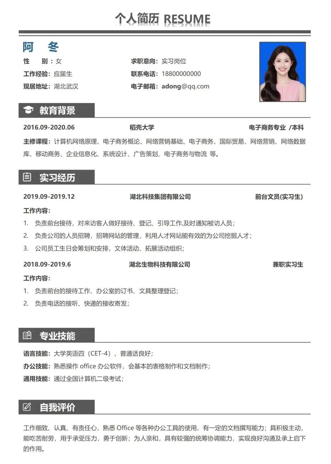 无论是初入职场的小白,还是经验丰富的职场达人;无论是应聘技术岗位、营销岗位,还是行政、财务等其他岗位,这款简历模板都能完美适配。它就像一把万能钥匙,为你打开不同行业、不同岗位的求职之门。