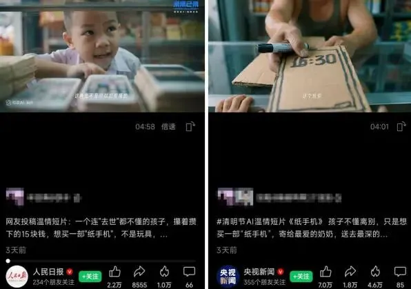 “什么叫去世啊,是不是去一个很远的地方就叫去世啊?”清明节前夕,一支5分钟的AI短片《纸手机》刷爆全网。