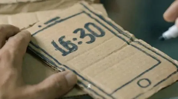 更典型的例子,是短片里唯一没用AI创作的道具——手绘纸片手机。杨选与李婷认为,AI生成结果太精致、太“丝滑”,不符合片中老板的年迈人设。最后,他们将真实道具的照片喂给AI——那个带着深深折痕、笨拙笔迹的纸板手机,藏着市井老人亲手制作的粗糙质感与真切温度,成为全片最为重要的情感锚点。