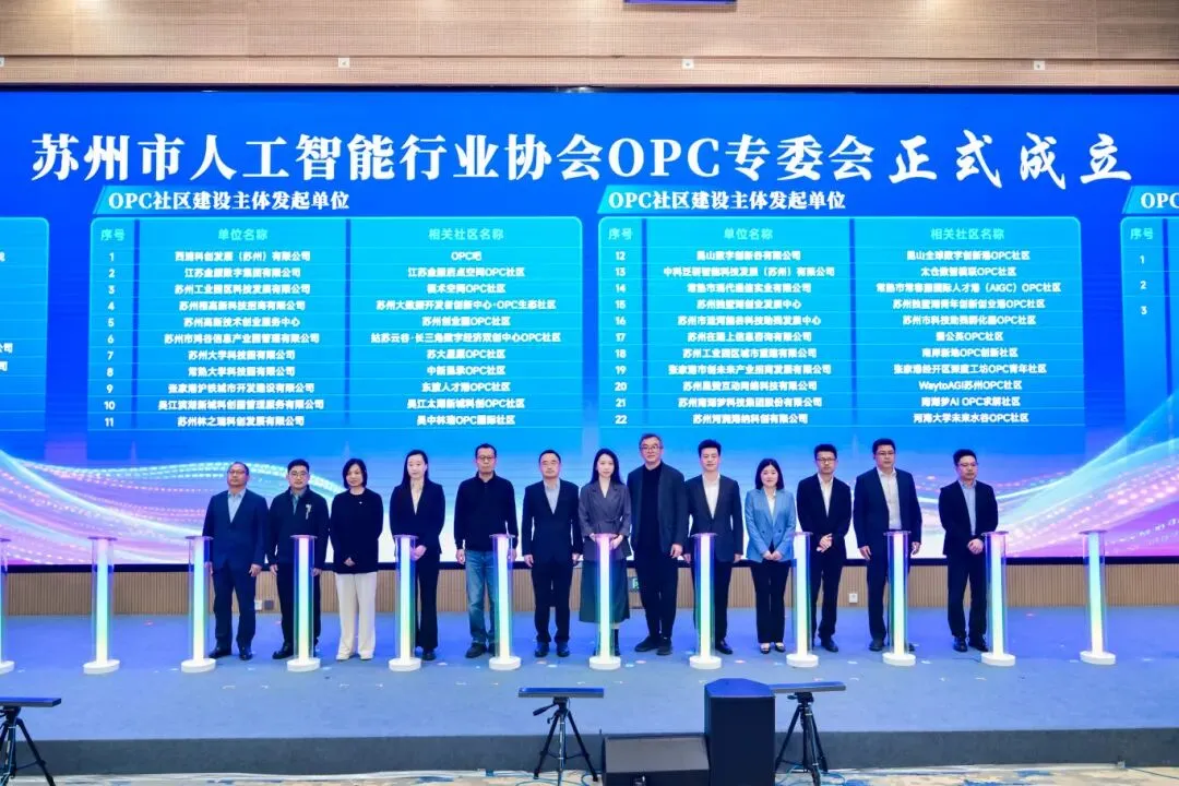 作为活动关键环节,苏州・OPC一站式公共服务平台及OPC公众号同步上线,“1+AI” 苏州OPC培育营正式开营。