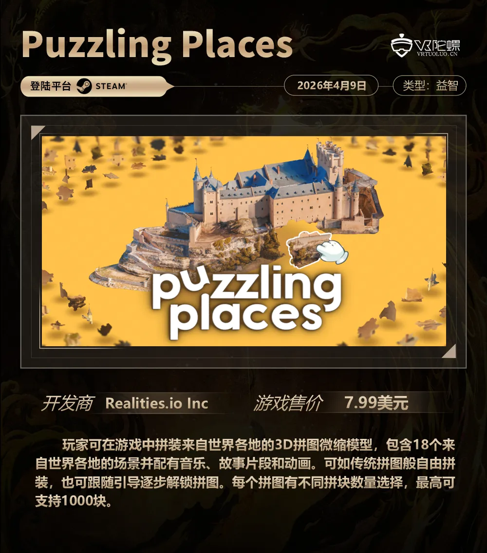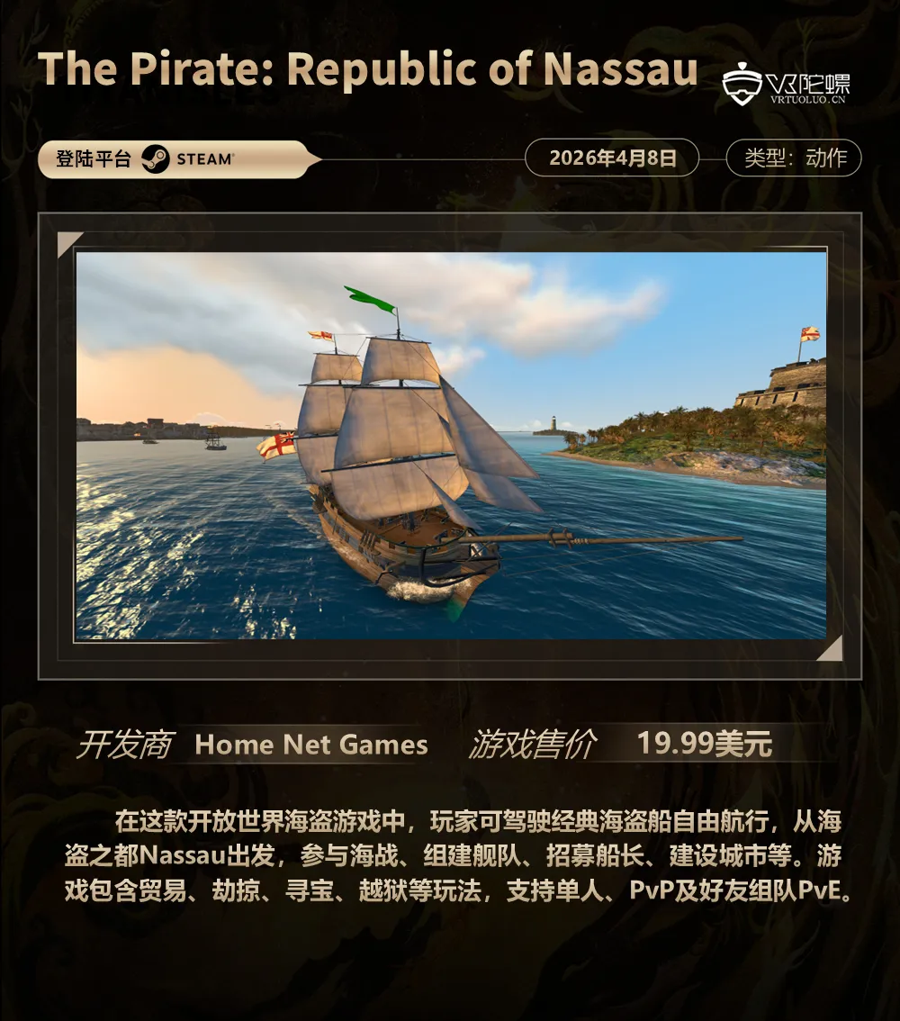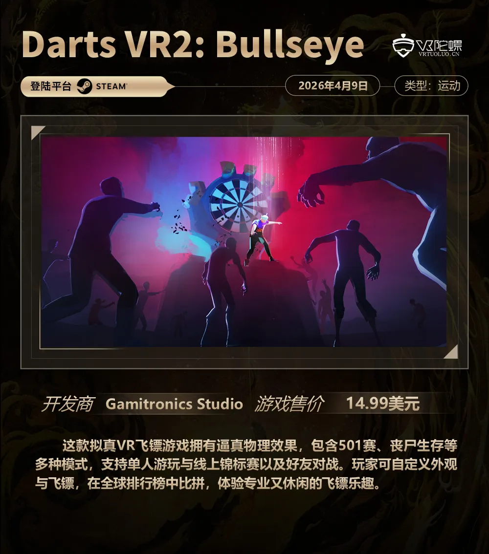 VR游戏周报·第187期,统计4月4日~4月9日期间上线的VR游戏,新作介绍共计5款,后文按照发售时间排序。截至2026年4月9日,各主要VR平台的内容数量如下: