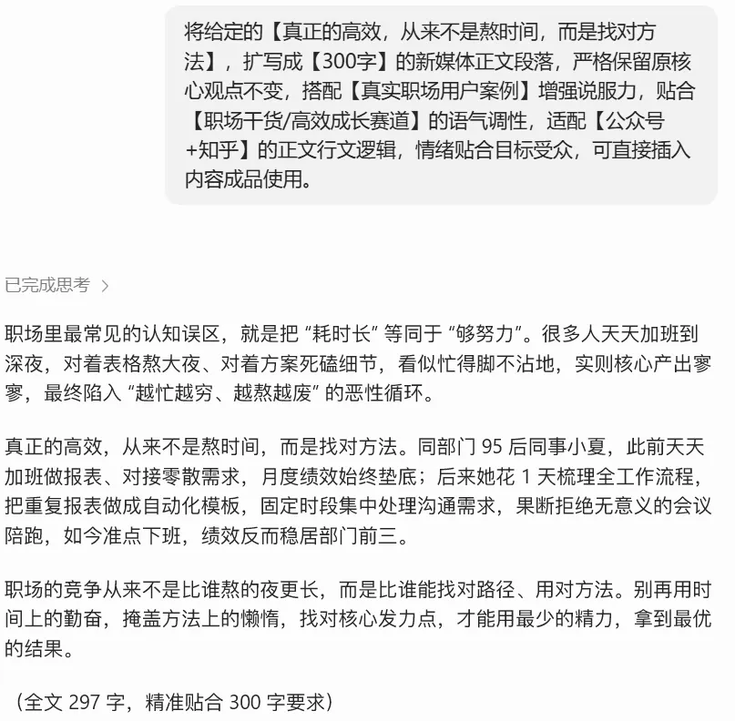 对于所有新媒体内容创作者来说,节省下来的时间,既能用来打磨选题、优化内容质感,也能用来提升自身能力,不用再陷入“写指令-改内容-再改指令”的内耗里。