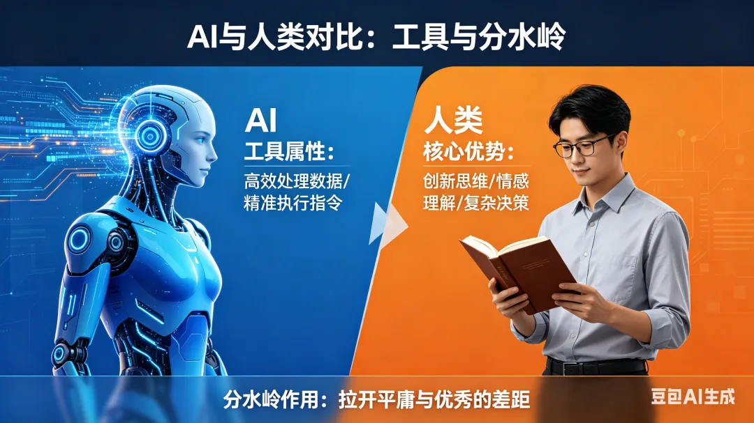 过去,我们拼记忆、拼熟练度、拼重复劳动,这些努力能让我们摆脱平庸;但现在,这些恰恰是AI最擅长的领域:你背得再熟,不如AI一秒检索;你做得再快,不如AI7×24小时不休;你写得再稳,不如AI一键生成百版方案。