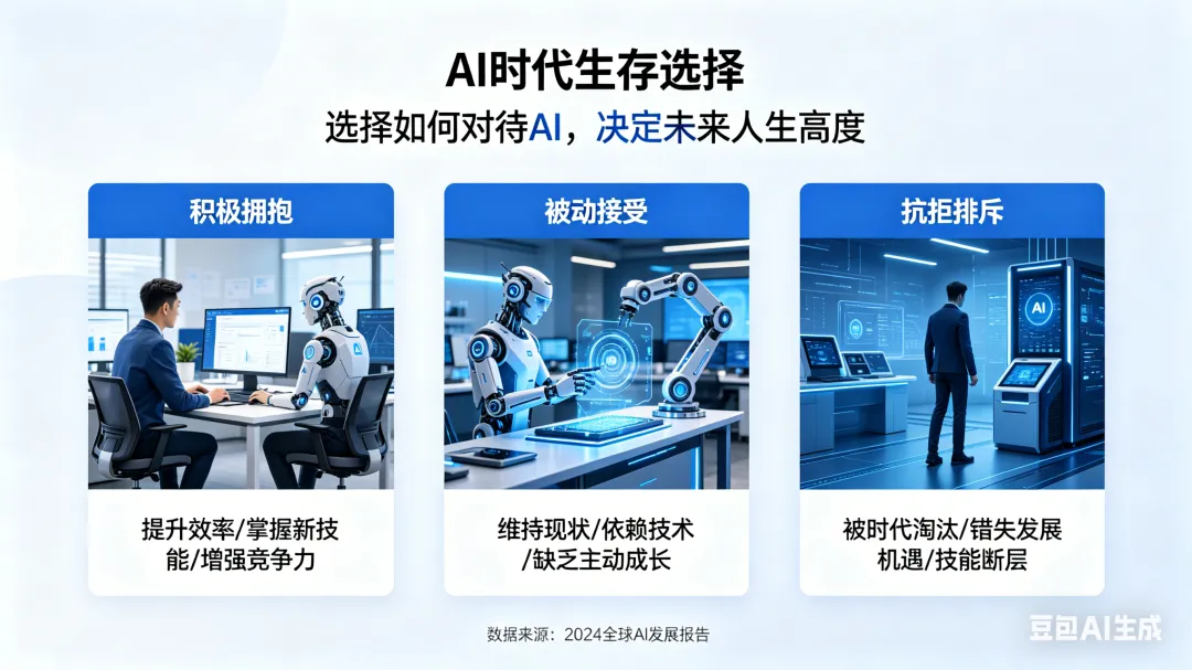 当ChatGPT写文案秒出稿、AI绘画比肩设计师、智能机器人包揽重复工作,当越来越多岗位被AI重构、替代,无数人陷入集体焦虑:拼命学技术、追风口、练技能,真的能躲过被淘汰的命运吗?