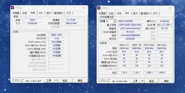 内存:威刚DDR5 6000MHz 16G×2双通道