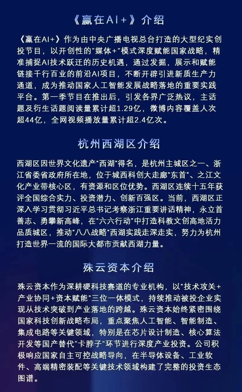 央视《赢在AI+》第二季殊云资本杭州西湖区路演专场及报名通道