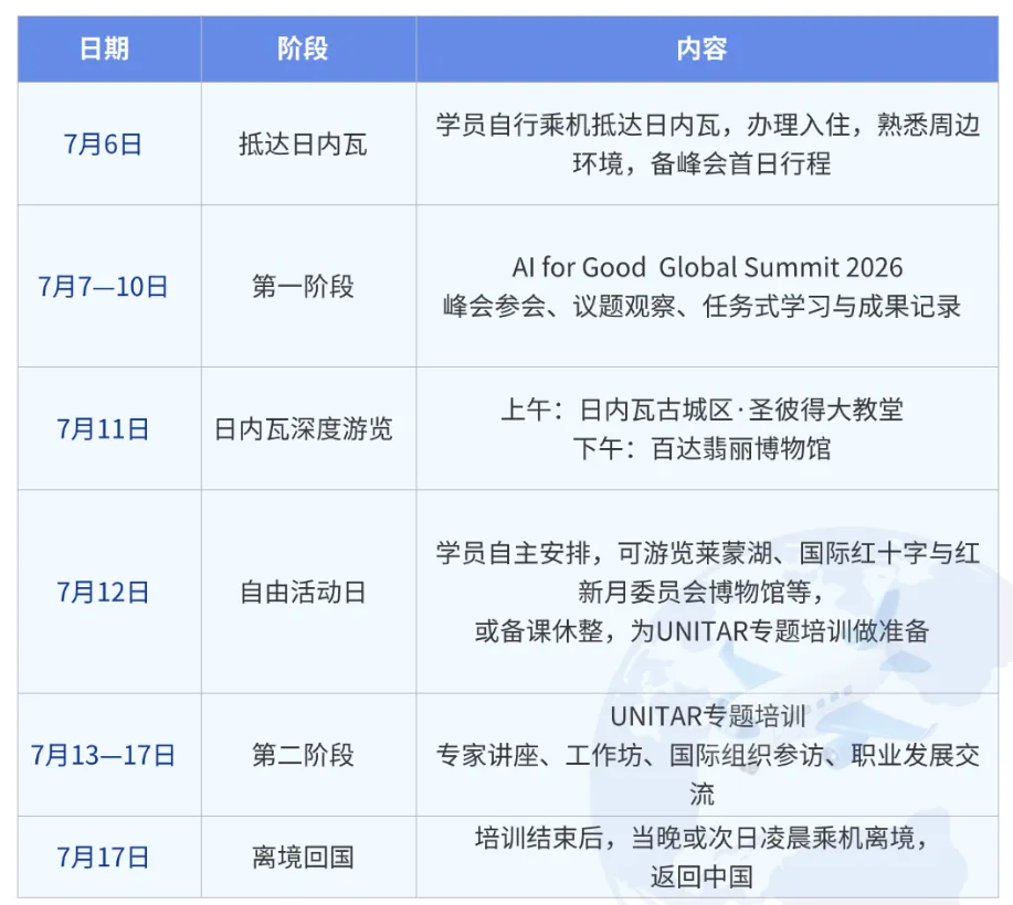 第一阶段:出席联合国“AI向善 · 全球峰会2026”(7月7—10日)
