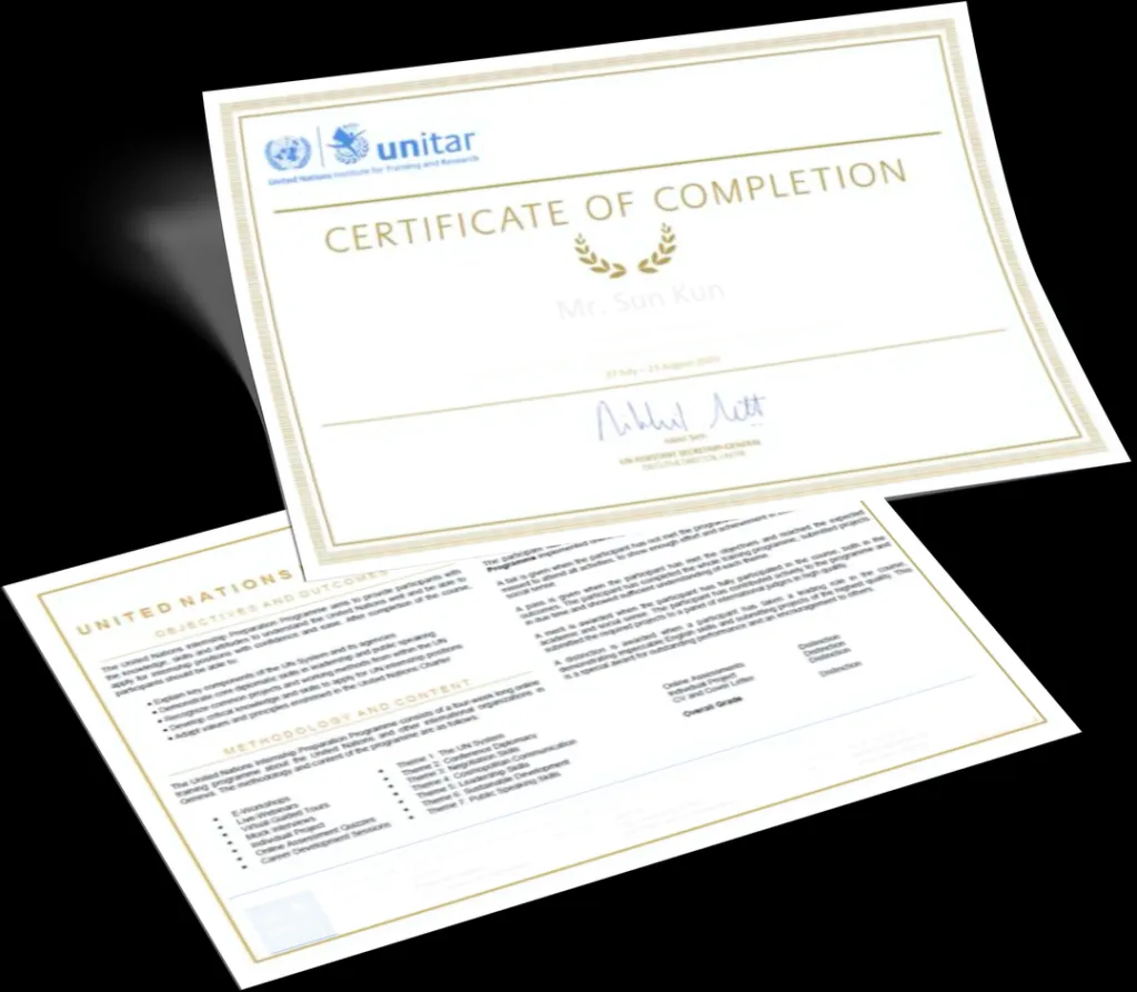 UNITAR官方结业证书(Certificate of Completion)——联合国训练研究所颁发,记录真实培训经历